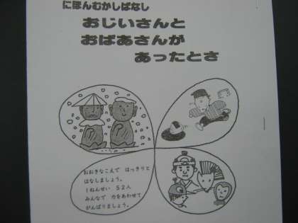 学習発表会の練習が始まりました。1年生の発表は,「おじいさんとおばあさんがあったとさ」。みんながよく知っている日本昔話からおむすびころりん・かさこじぞう・ももたろうの3つを語ります。