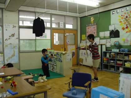 今日の朝休みに、レゴで作った銃で、銃撃戦をしました。段ボールで盾を作ったりして、とても楽しかったです。