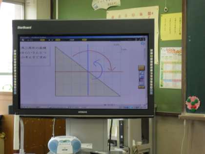 電子黒板を使って,三角形の面積の求め方をみんなで話し合いました。