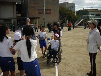 みんなが大好きな玉入れです。西京極のお友達と協力して、一生懸命がんばりました。
