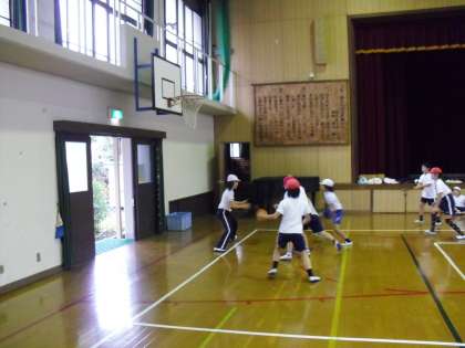 今日の体育は、雨が降ったのでベースボールではなく、体育館でバスケットボールをしました。パスの練習をして、ミニゲームをしました。