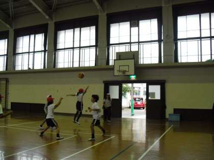パス練習の後には,チームごとに試合をしました。