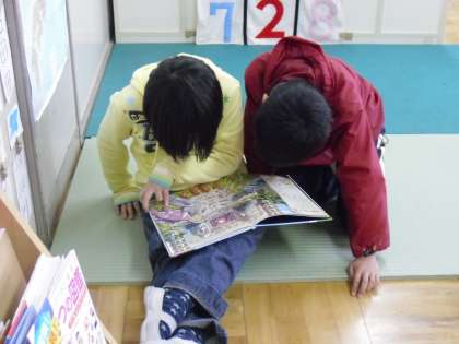 今日の中間休みに、6年生のお姉さんと「大迷路」を一緒に読みました。なかよしこよしです。