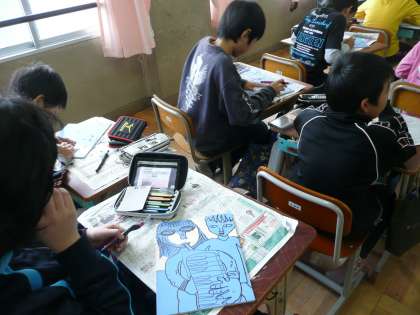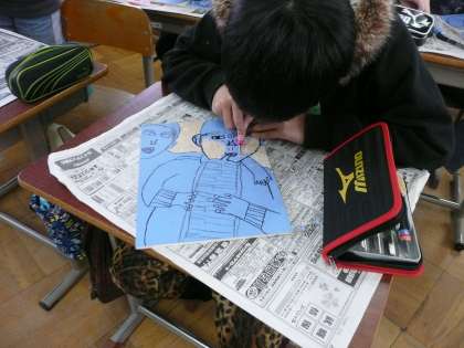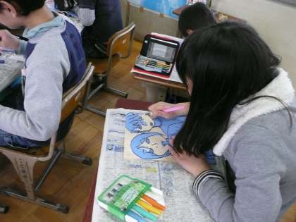 彫刻刀でていねいに彫ります。すごく集中して頑張って彫っているので,