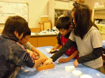 アンモナイトや三葉虫など、貴重な化石をさわらせていただきました。とても高価な物なので、取りあつかいに注意しました。