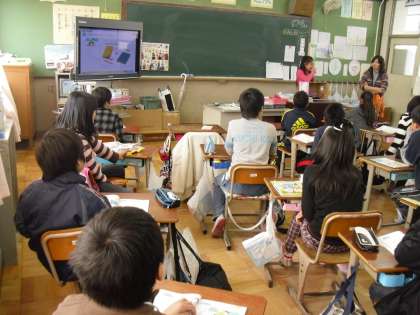 英語の学習で、箱の中身はなんじゃらほいゲームをしました。いろいろ用意してくだっていて、とても盛り上がりました。