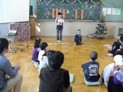 西京極小学校、葛野小学校、西京極西小学校の3校が集まって、クリスマス会をしました。いろんなゲームなどをして楽しみました。