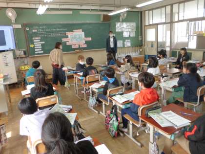 4年生は外国語活動に取り組んでいます。今日はALTのザカリー先生と一緒に「世界のあいさつ」について学習しました。世界にはいろいろな挨拶がありますね・・・難しい発音にも楽しんで挑戦していました。