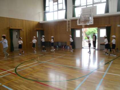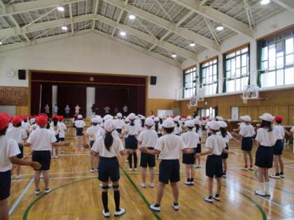 最後は、体育館で集まったみんなで曲を流して、円になって踊りました。円になると友達の顔が見えて、自然と笑顔になって踊る様子もありました。