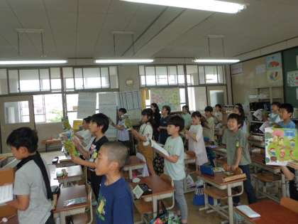 今日は「歌のにじ」「まきばの朝」をのびやかな声で歌うことができました。伴奏に合わせて自分たちの歌声だけで歌うことができるとにっこり笑顔。見ているこちらも幸せな気分になりました。口を大きく開けて一生懸命うたう子供たちに、心からの拍手です!