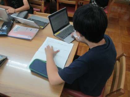 国語科で「みんなが過ごしやすい町へ」を学習しています。「みんなが過ごしやすい町にするために工夫すること」を報告するため情報を集めています。今日は図書館へ行き、関連図書も使って調べました。