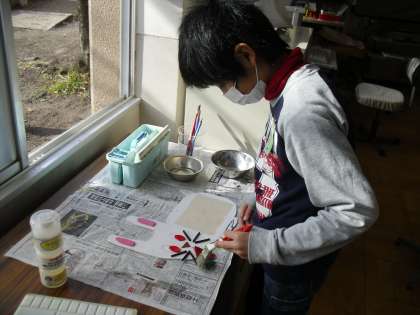 今日、伝言板にニスをぬりました。いよいよ完成間近です。あと、プレートを張り付けてひもをつけたら完成です。