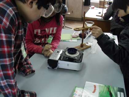蒸発させて取り出す方法と,氷水で冷やして取り出す方法で実験しました。