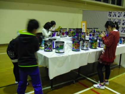 4年生の力作を展示しました。版画とステンドボックスです。作品展をめざして粘り強く取り組んだ作品です。