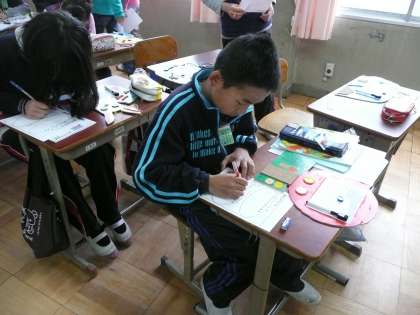 自分の作品の紹介のプリントの確認をしたあと,友達の作品の良い所を