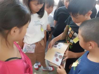 夏休みの自由研究を見ながら交流すると、とても盛り上がっていました。楽しい思い出はいくら話しても時間が足りないようでした。