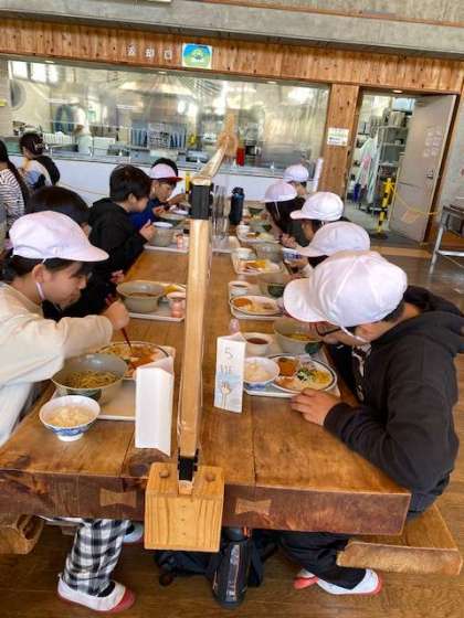 昼食はラーメンとバイキングです。みんなお腹がすいたようでしっかり食べています。