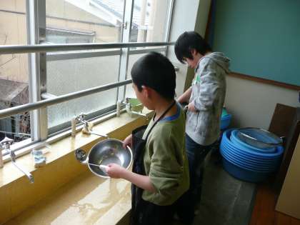 自分たちで洗い物をしているところです。