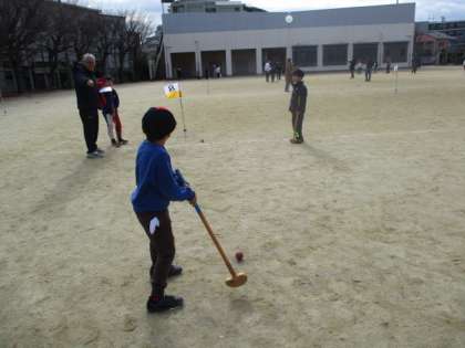 1月27日にPTA主催の親子グランドゴルフ大会が開催されました。西京極体育振興会、グランドゴルフクラブの地域の皆様のお力添えにより約50名の親子の皆さんでグランドゴルフを楽しみました。あちらこちらで歓声があがり盛り上がっていました。