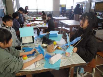6年生は工作でクランクの仕組みを生かして動くことから発想して表しました。