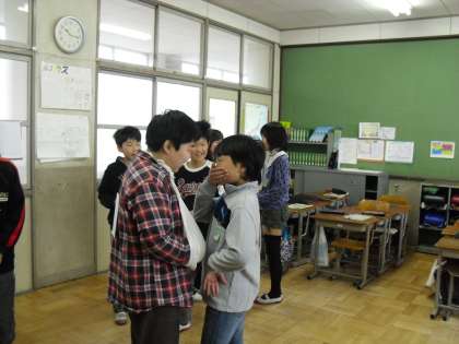 グループで協力して円盤をおろすゲームや,わたしは誰でしょう?というゲームをみんなでしました。