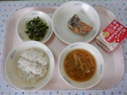 今日は「さばのたつたあげ」ということで、子どもたちに「竜田揚げ」の由来について紹介しました。カリッと揚がった竜田揚げはごはんによく合い、子どもたちにも大人気でした。
