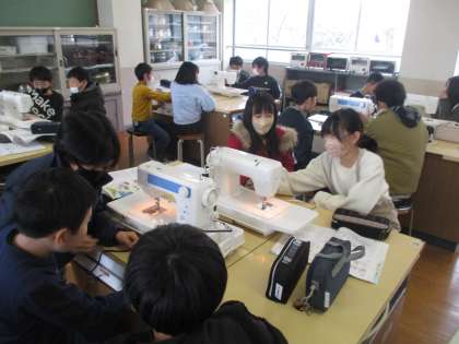 今日は家庭科の学習でミシンに触れました。ミシンの各部分の名前や、糸のかけ方など、友達と協力しながら学びました。次回は実際にミシンで縫う練習をします!