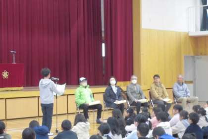 そのような活動を続けてくださっている方々に学校長から感謝状をお渡ししました。また子どもたちからも感謝の気持ちをお伝えました。今年度も登下校中の事故なく過ごせて本当によかったです。安全ボランティア見守り隊の皆様、1年間ありがとうございました。
