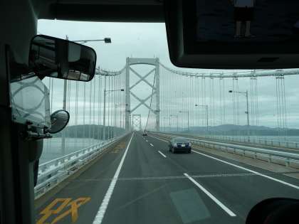 修学旅行では,本州と四国をむすぶ「3つの橋」をバスで