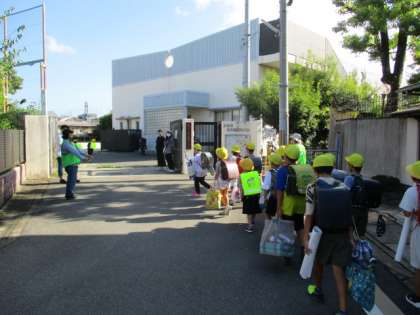 安全ボランティアの方やPTAの方に迎えられ、元気に挨拶をしていました。