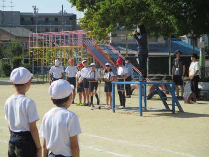 全校体育では、スポーツフェスティバルで行う準備運動や「わが町音頭」等の練習をしました。5・6年生の係活動で決勝や応援・準備運動・準備等があり、子供たちは自分の役目を果たそうと頑張っています。