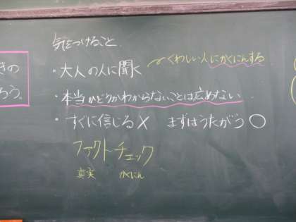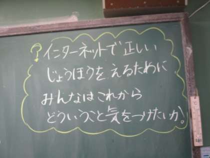 今月は人権教育として全校で情報モラルをテーマに取り上げています。3年生の教室でも学活の「こころの日」の取組として情報モラルについて学習していました。めあては「インターネットを使う時のルールやマナーについて知ろう」です。