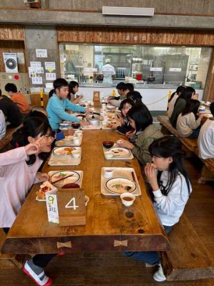 朝食はパンとご飯を選んで食べています。チキンナゲットとミートボールが人気です。