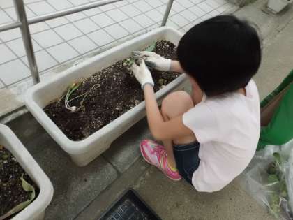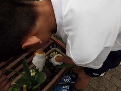 園芸委員会では,「笑顔いっぱい,花いっぱいの西西」を目指していろいろな花を育てる計画を立てました。そのために,まずはプランターの草抜きや整理です。みんなで協力してたくさんのプランターがきれいになりました。