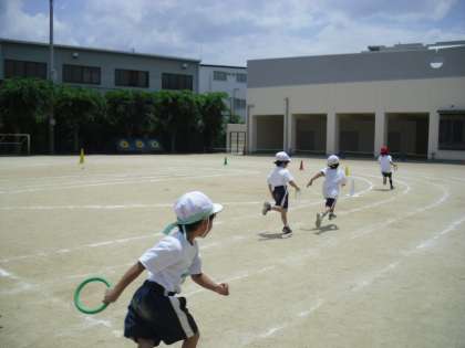 学年リレー練習しています