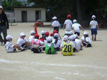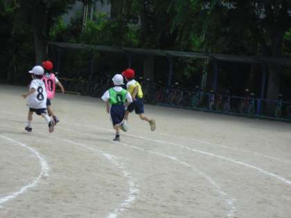 学年リレーでは,アンカーはビブスを付けます。一生懸命に一人ひとり頑張って走ります。