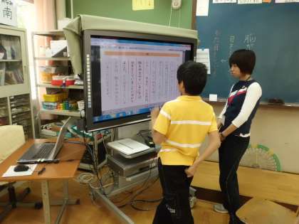 国語の学習で、デジタル教材で学習に取り組んでいます。