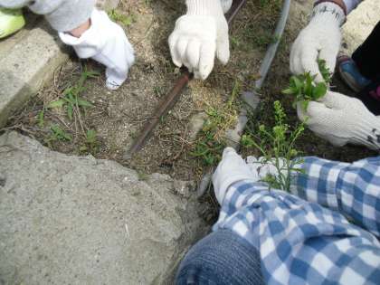 今日は,ごみゼロ集会の日でした。1年生は,運動場をきれいにしました。運動場の石拾いや草ぬきをしました。