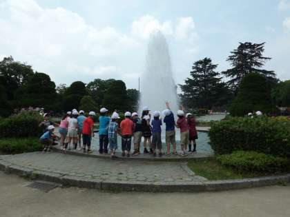 特に,今は「バラ」が美しく咲いていて,心地よい風にかぐわしい「バラの香り」が運ばれてきます。色とりどりのバラの花を「すごーい!」「きれいやなあ。」と愛でながら,噴水では「シャワーみたい。」と戯れる姿も見せてくれました。