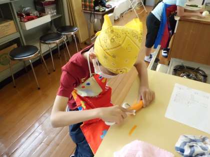 今日、調理実習がありました。野菜炒めを作りました。野菜を切るのを分担したり、食器の用意を分担したりしました。とてもおいしくできてよかったです。