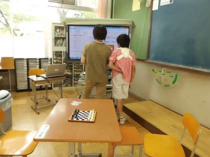 中間休みに、先生とチェスをしました。どの駒が、どんな動きができるのかを確認しながらしました。