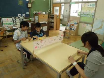 朝読書の時間に、いろんな学年の先生と交流しています。今日は、6年生の先生と交流しました。大盛り上がりでした。