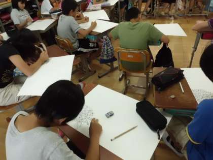 いただいたあじさいをよく見ながら,図工の絵を描いています。