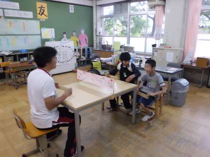 3組の朝交流です。今日は、6年生の先生がきてくれました。7−6という白熱した試合で、とても盛り上がりました。次こそ、かちたいです。