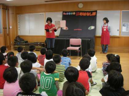 今日6月15日1時30分より2時までお話会がありました。もも太郎の紙芝居やぼちぼちいこかなどの本4冊を読んでいただきました。