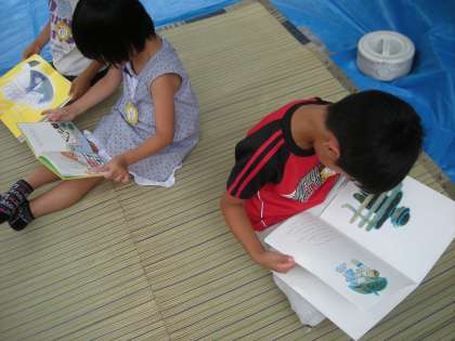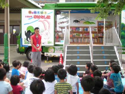 お話キャラバンカーが来ました。550冊ある本は新しく素敵な本ばかりです。敷物の上で選んだ本を読んでいました。楽しい読書の時間を過ごすことが出来てよかったです。