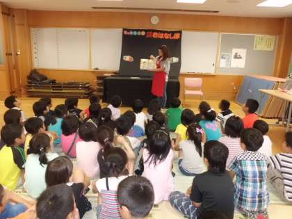1・2年生を対象に本を紹介してくださったり,読聞かせをしていただきました。