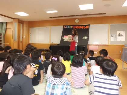 15日(金)の5時間めに『お話キャラバンカー』が学校に来てくれました。