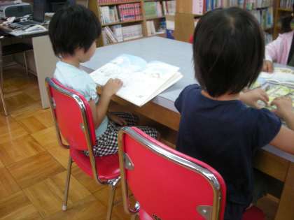 毎週1年生は,木曜日に図書室に行きます。先週借りた図書室の本を返します。それから借りたい本を選びます。