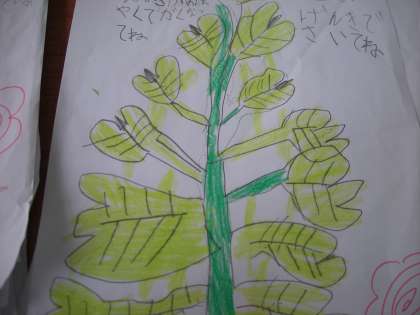あさがおの成長をかんさつしました。本葉の様子や花のつぼみを観察しました。つぼみの数を数えて,楽しみにしている1年生です。